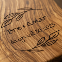 Each board is made to order and carefully finished to your specifications. From selecting the olive wood to engraving your custom details, every step is done with intention not rushed, not mass-produced.